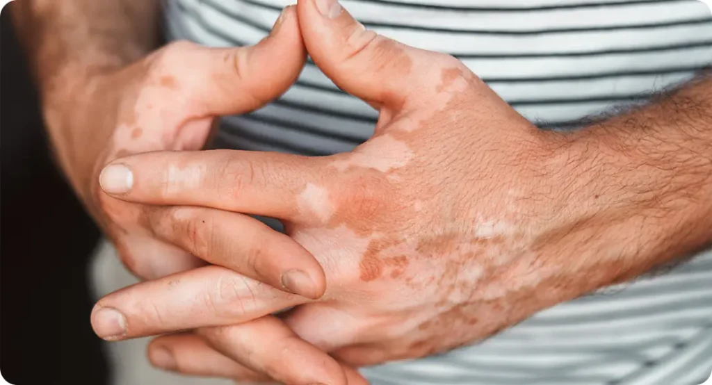 Another reason early signs go unnoticed is that pigment loss tends to start in areas exposed to friction or pressure places that already experience irritation. If a slightly pale patch appears on your knuckles, underarms or thighs, you might assume it’s due to rubbing from clothing rather than a pigment condition.