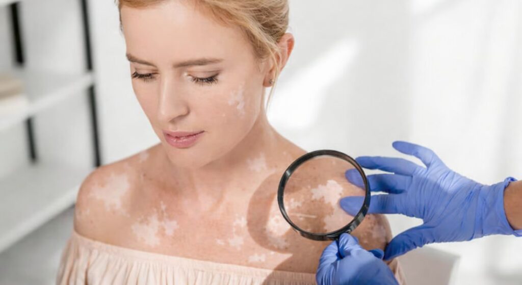 - Use of a Wood’s lamp: A Wood’s lamp may be used to examine your skin under ultraviolet light. This can make areas of pigment loss appear more distinct, helping to confirm the diagnosis.